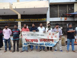 ধর্মঅবমাননার অভিযোগ এনে নড়াইলের অধ্যক্ষ স্বপন কুমার বিশ্বাসের গলায় জুতার মালা পরানো, সাভারের শিক্ষক উৎপল কুমার সরকার হত্যাকান্ডসহ শিক্ষাপ্রতিষ্ঠানে হিন্দু শিক্ষকদের নির্যাতনের প্রতিবাদে ‘নিপীড়নের বিরুদ্ধে চট্টগ্রাম’র উদ্যোগে মানববন্ধন অনুষ্ঠিত হয়।