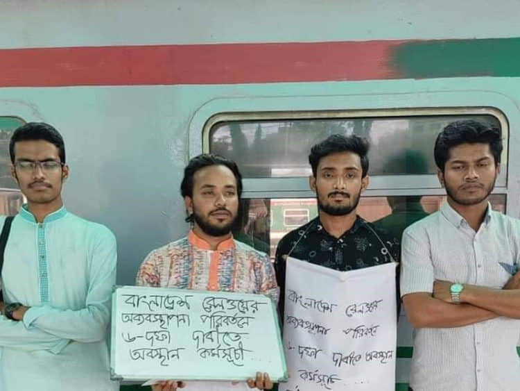 রেলওয়ের অব্যবস্থাপনা-দুর্নীতিরোধে প্ল্যাকার্ড হাতে চট্টগ্রাম স্টেশনে শিক্ষার্থীদের অবস্থান কর্মসূচি