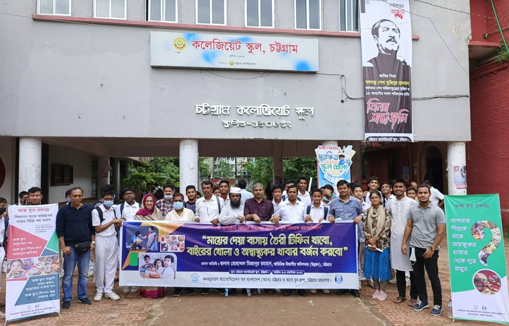 চট্টগ্রামের কলেজিয়েট স্কুলে দুইদিন ব্যাপী নিরাপদ খাদ্য বিষয়ে প্রচারনা কর্মসূচি শুরু -বাইরের খোলা ও অস্বাস্থ্যকর খাবার বর্জন করে মায়ের দেয়া বাসায় তৈরী টিফিন খাওয়ার আহ্বান