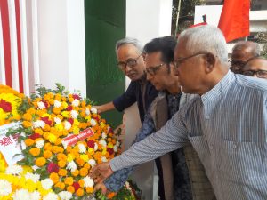শ্রদ্ধাঞ্জলি অর্পণ শেষে সংক্ষিপ্ত সভায় বক্তারা বলেন, সরকার মুক্তিযুদ্ধের চেতনার কথা বললেও এ চেতনা ভূ-লুণ্ঠিত করে ক্ষমতা আকড়ে ধরে রাখতে তারা গণতন্ত্রহীন পরিবেশ সৃষ্টি করেছে। মুক্তিযুদ্ধের অর্জন রাষ্ট্রীয় খাতকে লুটেরাদের হাতে তুলে দিচ্ছে। ফলে লুটপাট-দুর্নীতি, টাকা পাচার, ঋণ খেলাপী বেড়ে চলেছে। উৎপাদনের সঙ্গে সম্পর্কিত সাধারণ মানুষ সংকটে পড়ছে। বৈষম্য বেড়েই চলেছে। এই ধারা অব্যাহত রাখতে শাসকরা গণতন্ত্রহীনতা, সাম্প্রদায়িকতাকে প্রশ্রয় দিচ্ছে।’
