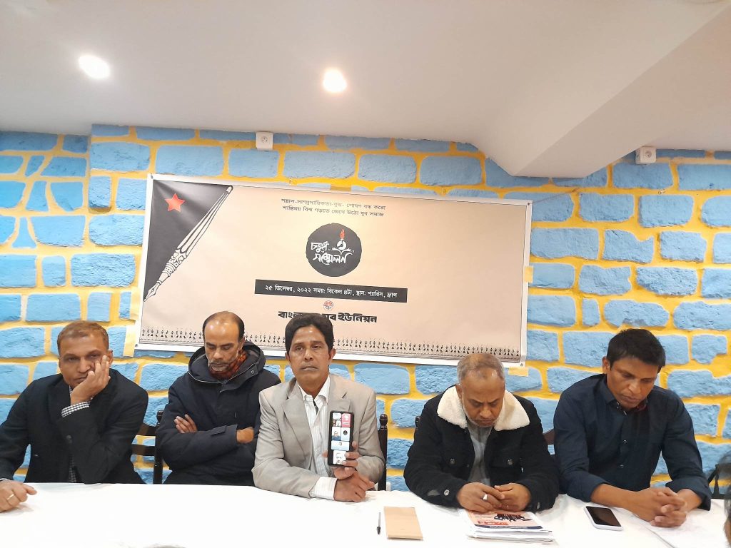 ‘সন্ত্রাস-সাম্প্রদায়িকতা-যুদ্ধ-শোষণ বন্ধ কর, শান্তিময় বিশ্ব গড়তে জেগে উঠো যুব সমাজ’ এই স্লোগানকে সামনে রেখে রবিবার ফ্রান্সের রাজধানী প্যারিসে অনুষ্ঠিত হলো বাংলাদেশ যুব ইউনিয়ন ফ্রান্স শাখার ৪র্থ সম্মেলন। জাতীয় সঙ্গীতের মাধ্যমে সম্মেলন শুভ উদ্বোধন করা হয়। ভিডিও কনফারেন্সে সম্মেলন উদ্বোধন করেন যুব ইউনিয়ন কেন্দ্রীয় কমিটির সভাপতি হাফিজ আদনান রিয়াদ। উদ্বোধনের পর রমেন্দ্র কুমার চন্দের সভাপতিত্বে ও ফাহাদ রিপনরে সঞ্চালনায় আলোচনা সভায় স্বাগত বক্তব্য রাখেন সম্মেলন প্রস্তুতি কমিটির আহবায়ক লোকমান আহম্মদ আপন। আলোচনাপর্বে বাংলাদেশ থেকে প্রধান আলোচক হিসেবে ভিডিও কনফারেন্সে বক্তব্য রাখেন বাংলাদেশ যুব ইউনিয়ন কেন্দ্রীয় কমিটির সাধারন সম্পাদক খান আসাদুজ্জামান মাসুম। বক্তব্য রাখেন, যুব ইউনিয়নের সাবেক প্রেসিডিয়াম সদস্য আনোয়ার হোসেন সুমন, যুব ইউনিয়নের আন্তর্জাতিক বিষয়ক সম্পাদক ম. ইব্রাহিম, যুব ইউনিয়ন যুক্তরাজ্য সংসদের সভাপতি ইফতেখারুল হক পপলু। বিশেষ অতিথি হিসেবে উপস্থিত ছিলেন সিপিবি ফ্রান্স শাখা সম্পাদক ও ইউরোপ কেন্দ্রীয় কমিটির সদস্য কমরেড আহমেদ আলী দুলাল। আলোচনায় অন্যান্যদের মধ্যে বক্তব্য রাখেন গৌতম বিশ্বাস, বাবলু হোসেন, এলান খান, ইশরাত ফ্লোরা, তানভীর সরকার সাওন, নাসির উদ্দিন, গোলাম রাব্বী চৌধুরী ওয়াফী, রহমত উল্লাহ চৌধুরী সুজন, মোহাম্মদ গোলাম মোর্শেদ এবং প্রস্তুতি কমিটির চেয়ারম্যান জবরুল ইসলাম চৌধুরী লিটন। আলোচনায় বক্তারা বলেন, বাংলাদেশ তথা সারা বিশ্বের রাজনৈতিক এবং অর্থনৈতিক পরিস্থিতি ক্রমাগত অবিনতির দিকে যাচ্ছে। যুদ্ধ, সন্ত্রাস এবং পুঁজিবাদী অর্থনৈতিক ব্যবস্থা বিশ্বকে চরম অস্থিরতার দিকে ঠেলে দিচ্ছে। বিশেষ করে বাংলাদেশে উন্নয়নের নামে ব্যাপক লুটপাট, সন্ত্রাস, মাদকাশক্তি, সাম্প্রিদায়িক সংঘাত যেমন আর্থ-সামাজিক অস্থিরতা বৃদ্ধি করছে তেমনি বাড়ছে বেকারত্ব এবং দারিদ্রতা। এমতাবস্থায় সচেতন যুব সমাজকে প্রতিবাদী চেতনায় জাগ্রত হয়ে সুন্দর ভবিষ্যৎ বিনির্মাণে কাজ করতে হবে। আলোচনায় বন্তুারা বাংলাদেশের অর্থনীতিতে প্রবাসীদের বিরাট অবদানের কথা তুলে ধরেন এবং বিভিন্নভাবে প্রবাসীদের হয়রানির সমালোচনা করে প্রবাসী হয়রানী বন্ধ করার জোর দাবী জানান। বক্তারা আরো বলেন, বাংলাদেশসহ সারা বিশ্বের যুব সমাজের ব্যাপক কর্মসংস্থান ও যুগপোযোগী যুবনীতি প্রণয়ণ করে তা বাস্তবায়নের জন্যে যুব ইউনিয়ন দেশে বিদেশে কাজ করে যাচ্ছে। দ্বিতীয় পর্বে সম্মেলন প্রস্তুতি কমিটির চেয়ারম্যান জবরুল ইসলাম চৌধুরী লিটনের সভাপতিত্বে কাউন্সিল অধিবেশন শুরু হয়। কাউন্সিল অধিবেশনে সর্বসম্মতিক্রমে ফাহাদ রিপনকে সভাপতি, বাবলু হোসেনকে সা