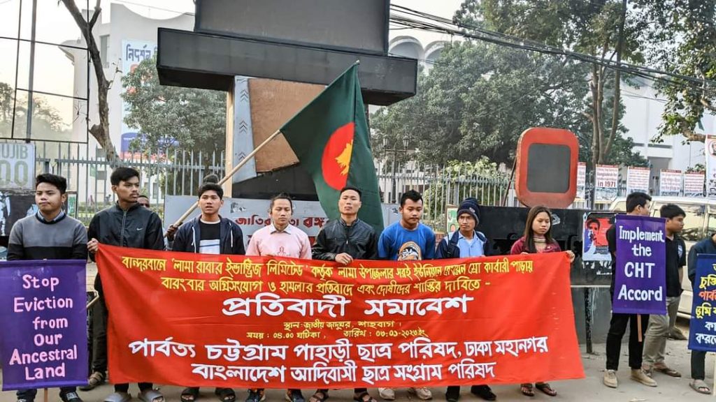 আজ ৩ জানুয়ারি ২০২৩ রোজ সোমবার বিকাল ৪ টায় জাতীয় জাদুঘরের সম্মুখে শাহবাগে বান্দরবানে ‘লামা রাবার ইন্ডাষ্ট্রিজ লিমিটেড’ কর্তৃক লামা উপজেলা সরই ইউনিয়নে রেংইয়েন ম্রো কার্বারী পাড়ায় বারংবার অগ্নিসংযোগ ও হামলার প্রতিবাদে  পার্বত্য চট্টগ্রাম পাহাড়ী ছাত্র পরিষদ, ঢাকা মহানগর শাখা এবং বাংলাদেশ আদিবাসী ছাত্র সংগ্রাম পরিষদ যৌথভাবে প্রতিবাদী সমাবেশের আয়োজন করেছে।