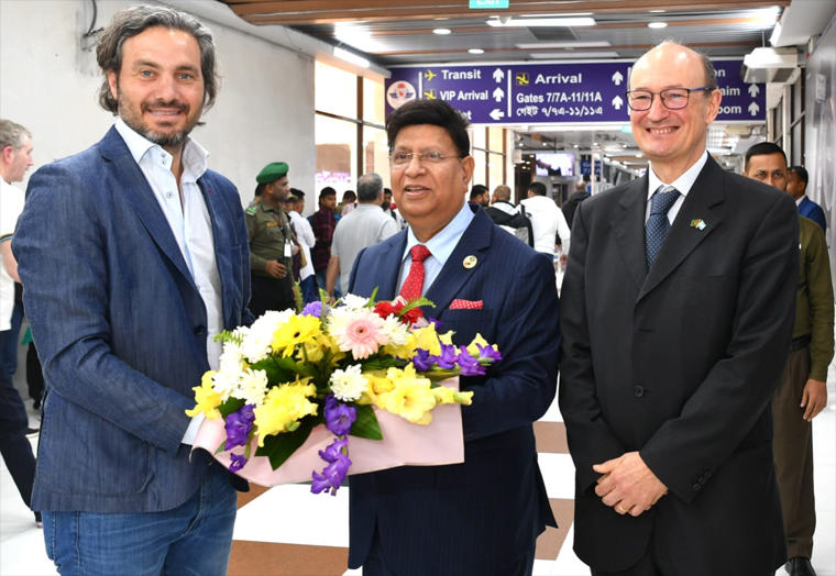 বাংলাদেশের পররাষ্ট্রমন্ত্রী ড. এ কে আব্দুল মোমেন হযরত শাহজালাল আন্তর্জাতিক বিমানবন্দরের বিআইপি লাউঞ্জে আর্জেন্টিনার পররাষ্ট্রমন্ত্রীকে স্বাগত জানান।