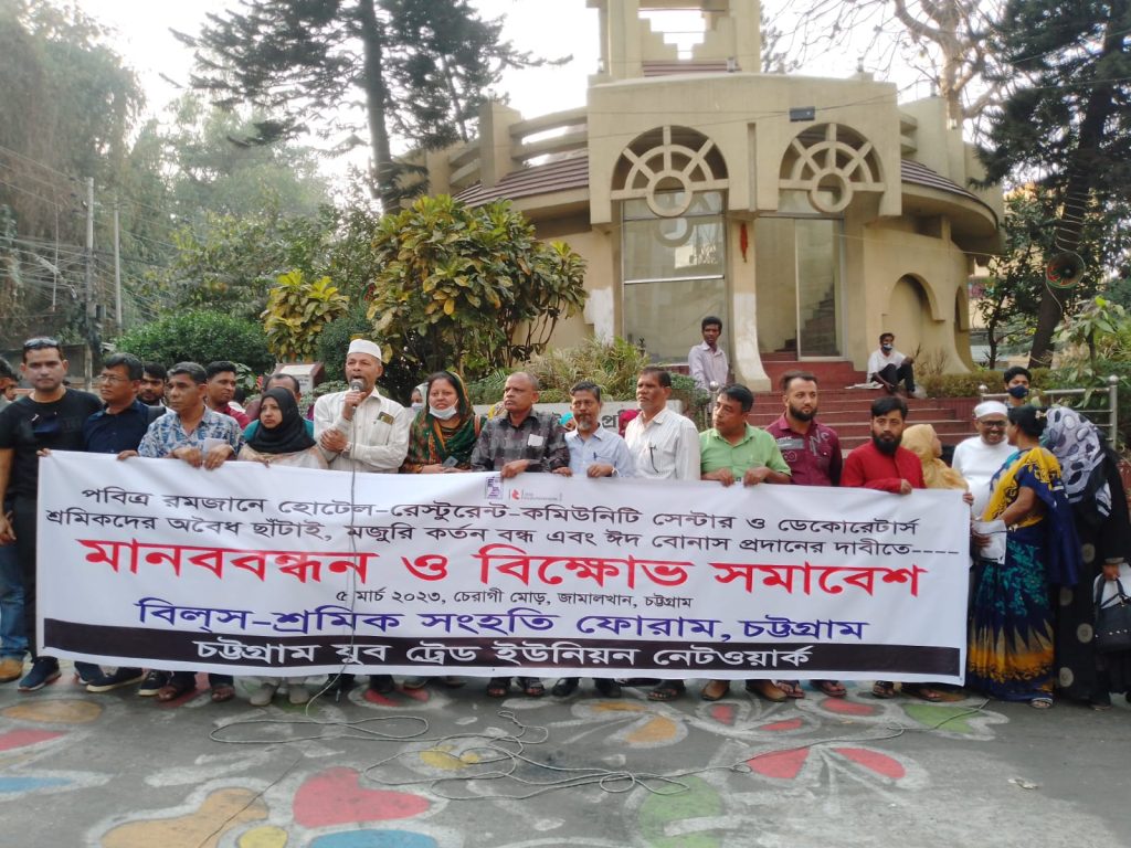 হোটেল, রেস্টুরেন্ট, কমিউনিটি সেন্টার ও ডেকোরেটার্স শ্রমিকেরা বাংলাদেশ শ্রম আইন ২০০৬ অনুযায়ী প্রাতিষ্ঠানিক শ্রমিক হলেও তারা অপ্রাতিষ্ঠানিক শ্রমিকদের মতো চাকরি করে এবং কেবল কাজ করলেই মজুরি পায় আর কাজ না করলে মজুরি পায় না। শ্রম আইন অনুযায়ী কোন সবেতন ছুটি পায়না। নিয়োগপত্র, পরিচয়পত্র, সার্ভিসবুক ইত্যাদি কোন কিছুই এই দুই সেক্টরের শ্রমিকদের দেওয়া হয়না। কাজ শেষে যে মজুরি তারা পায় তা এতই অপ্রতুল যে, বর্তমান উর্ধ্বগতি্র  বাজারমূল্যের সাথে কোনভাবেই  সামঞ্জস্যপূর্ণ নয়। রমজান মাসে হোটেল, রেস্টুরেন্ট, কমিউনিটি সেন্টার এবং ডেকোরেটার্স শ্রমিক ছাটাই বন্ধ এবং রমজান মাসের মজুরিসহ ঈদ বোনাস প্রদানের দাবীতে অনুষ্ঠিত সমাবেশে বক্তারা উপরোক্ত বক্তব্য প্রদান করেন।