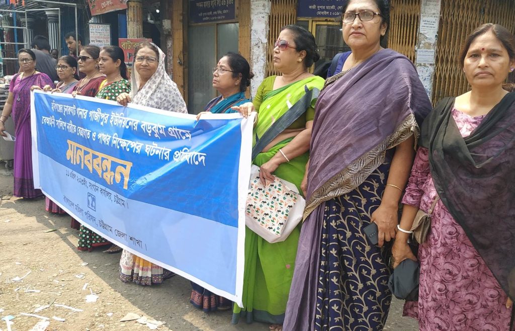 সংগঠনের চট্টগ্রাম জেলা শাখার সভাপতি অধ্যাপক লতিফা কবিরের সভাপতিত্বে এবং ভারপ্রাপ্ত সাধারণ সম্পাদক সিতারা শামীমের সঞ্চালনায় অনুষ্ঠিত উক্ত মানববন্ধন ও বিক্ষোভ আমাবেশে অন্যন্যের মধ্যে বক্তব্য রাখেন সহ সভাপতি অধ্যাপক শেলী দে, অর্থ সম্পাদক অধ্যাপক পূর্বা দাশ, সাংগঠনিক সম্পাদক অধ্যাপক স্বাতী পাল, আন্দোলন সম্পাদক জেসিন্তা ডায়েস, পরিবেশ সম্পাদক মিতা ঘোষ, সমাজ কল্যাণ সম্পাদক স্বপ্না বড়ূয়া, সদস্য চিন্ময়ী ঘোষ, মুন্নী দে সহ আরও সদস্য বৃন্দ।