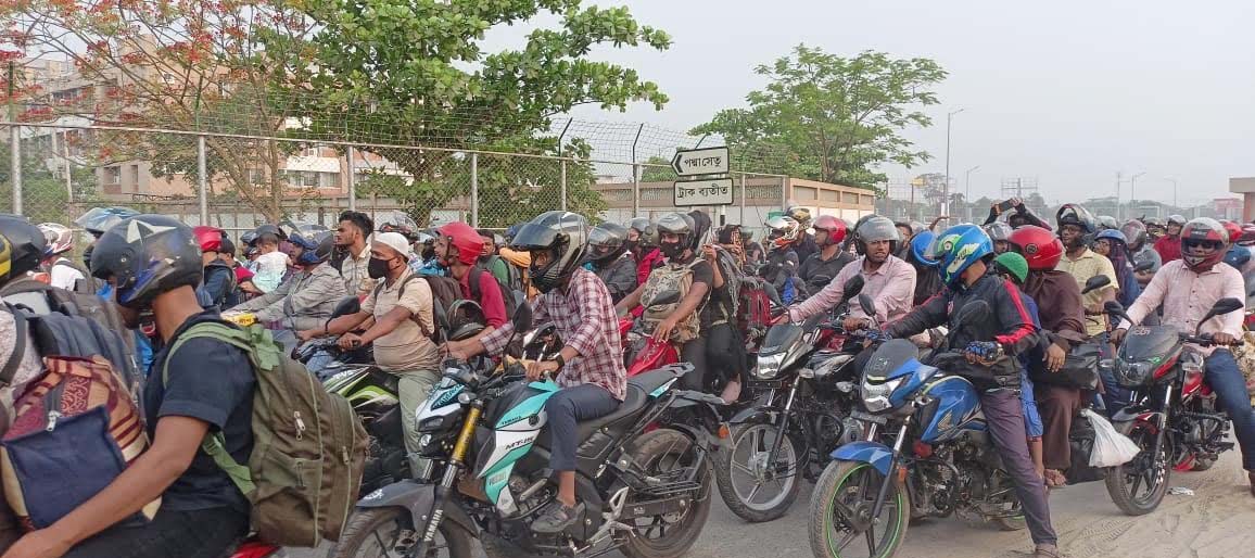 আজ বৃহস্পতিবার ভোর ছয়টা থেকে ঈদে ঘরমুখো মানুষ ঢাকা থেকে দেশের দক্ষিণ পশ্চিমাঞ্চলের ২১ জেলার মানুষ স্বস্তিতে স্বজনদের সাথে ঈদ উৎসবে পরিবারের সাথে যোগ দিতে রওয়ানা হয়েছেন। বাইকাররাও অত্যন্ত সুশৃঙ্খলার সাথে স্বপ্ন যাত্রার মধ্যদিয়ে পরিবারের সাথে ঈদ আনন্দ ভাগাভাগি করতে নারী পুরুষ আনন্দ ও উচ্ছ্বাসের সাথে ছুটে চলেছেন গন্তব্যের পথে।