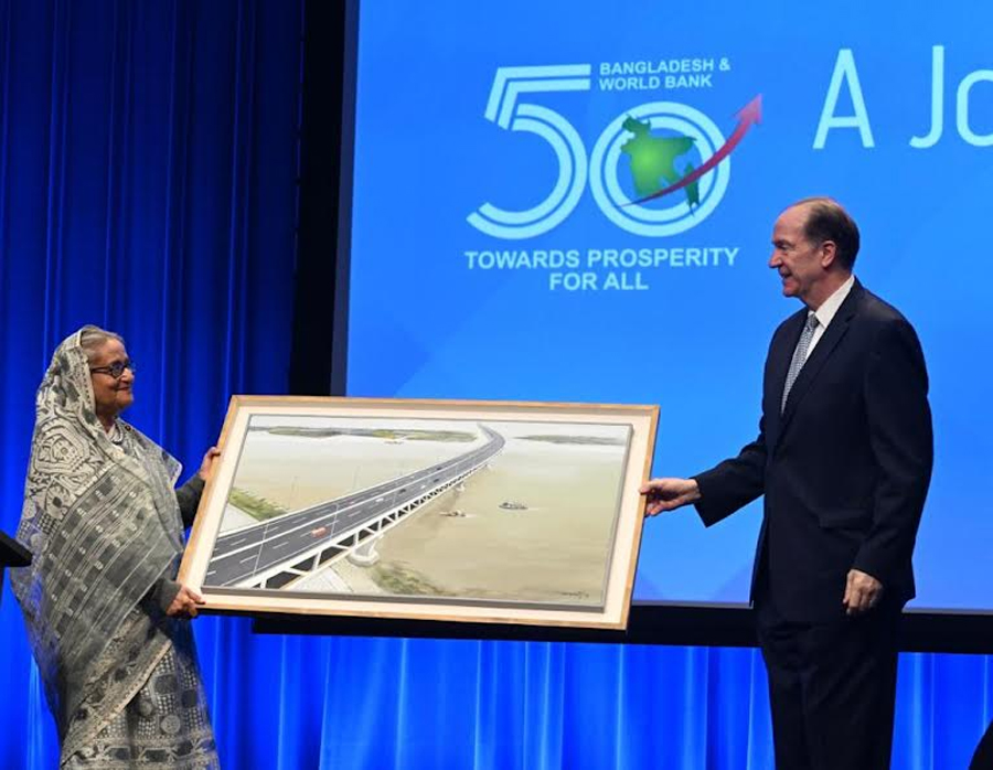 এ সময় প্রধানমন্ত্রী বিশ্বব্যাংকের প্রেসিডেন্টের কাছে পদ্মা বহুমুখী সেতুর একটি ছবি তুলে দেন।