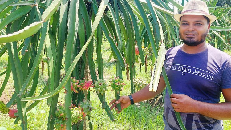 গাজীপুরের শ্রীপুরে ড্রাগন ফল চাষ করে বছরে ২০ লাখ টাকা আয়