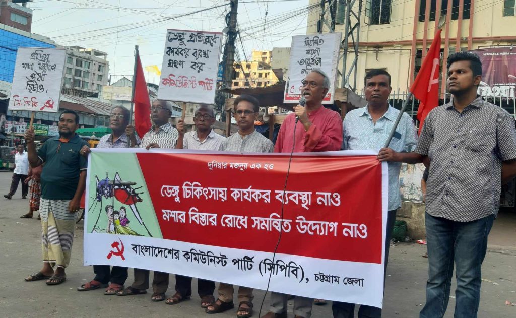 মশার বিস্তার রোধে সমন্বিত উদ্যোগ এবং ডেঙ্গু চিকিৎসা কার্যকর ব্যবস্থা নেয়ার দাবিতে আজ ১৫ জুলাই, ২০২৩ বিকাল ৫ টায় সিনেমা প্যালেস চত্ত্বরে বাংলাদেশের কমিউনিস্ট পার্টি, চট্টগ্রাম জেলার উদ্যোগে সমাবেশ অনুষ্ঠিত হয়৷