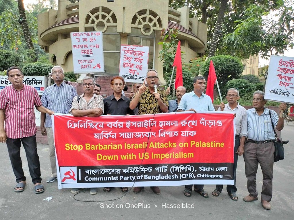 প্যালেস্টাইনে বর্বরোচিত হামলার প্রতিবাদে সিপিবি, চট্টগ্রাম জেলার বিক্ষোভ সমাবেশ