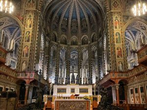 গির্জার অভ্যন্তরটি একটি বিশাল ল্যাটিন ক্রস আকার ধারণ করেছে, যেখানে চ্যাপেলগুলি গীর্জার মধ্যভাগ এবং পাশের আইলগুলোর দিকে কেন্দ্রীভূত এবং একটি প্রশস্ত ট্রান্সেপ্ট এবং রেডিয়াল চ্যাপেল দ্বারা বেষ্টিত।