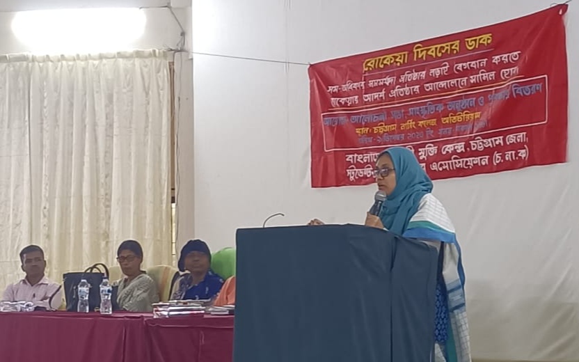 বক্তারা আরো বলেন,“রোকেয়ার জীবন সংগ্রাম আজও প্রাসঙ্গিক।নারীধর্ষণ-নারী নির্যাতন-সহিংসতা-নারীপাচার ক্রমাগত বাড়ছে।এ অবস্থায় নারী সমাজের প্রতি আমাদের আহ্বান -আসুন আমরা সবাই রোকেয়ার জীবন সংগ্রাম থেকে শিক্ষা নিয়ে সমমর্যাদা ও সমঅধিকার প্রতিষ্ঠার লড়াই বেগবান করি।পুঁজিবাদী শোষণ ও পুরুষতান্ত্রিক নিপীড়নসহ সকল প্রকার দমন- নির্যাতনের বিরুদ্ধে আন্দোলন গড়ে তুলি।”