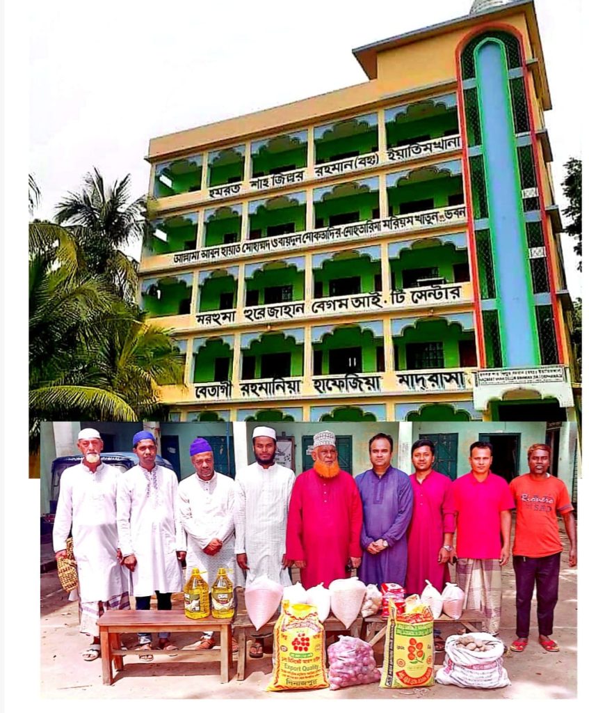 দরবার এ বেতাগী আস্তানা শরীফের সাজ্জাদানশীন ও বেতাগী আনজুমানে রহমানিয়ার সভাপতি পীরে তরিকত মাওলানা মুহাম্মদ গোলামুর রহমান আশরফ শাহ (মাঃজিঃআলী) ইয়াতিম খানার পক্ষে ইফতার সামগ্রী ও খাদ্য সামগ্রী গ্রহণ করেনএবং লায়ন্স ক্লাব অব চিটাগাং ইম্পেরিয়াল সিটির সকল সদস্যদের প্রতি ধন্যবাদ ও কৃতজ্ঞতা জ্ঞাপন করেন।