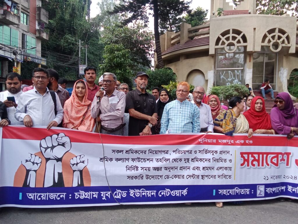 চট্টগ্রাম যুব ট্রেড ইউনিয়ন নেট ওয়ার্কের উদ্যোগে শ্রমিকদের অধিকার আদায়ের দাবীতে মানববন্ধন ও সমাবেশ