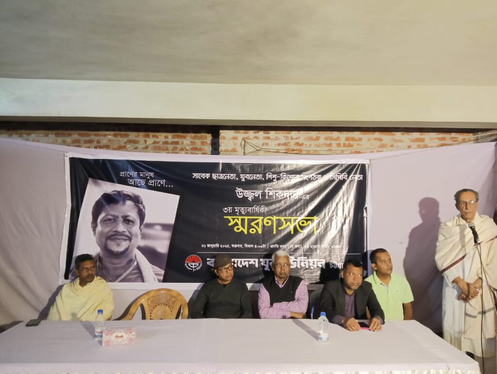 বাংলাদেশ যুব ইউনিয়ন চট্টগ্রাম জেলার সাবেক সাধারণ সম্পাদক,  প্রগতিশীল আন্দোলনের একনিষ্ঠ কর্মী কমরেড উজ্জ্বল শিকদারের তৃতীয় মৃত্যুবার্ষিকী উপলক্ষে আয়োজিত স্মরণসভায় বক্তারা বলেন, শোষণ–বৈষম্যহীন ও অসাম্প্রদায়িক সমাজ গড়ার সংগ্রামে অগ্রসৈনিক ছিলেন কমরেড উজ্জ্বল শিকদার। তিনি সারা জীবন সাম্যের স্বপ্ন বুকে নিয়ে কাজ করেছেন।