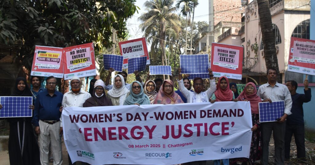 আন্তর্জাতিক নারী দিবস ২০২৫ উপলক্ষে “বিদ্যুৎ ও জ্বালানি খাতে নারীর ক্ষমতায়নঃ টেকসই উন্নয়নে জ্বালানি নিরাপত্তা ও অধিকার নিশ্চিত কর” শীর্ষক আলোচনা সভা গত ৮ মার্চ অনুষ্ঠিত হয়। সভায় বিদ্যুৎ ও জ্বালানি খাতে নারীর অংশগ্রহণ, ক্ষমতায়ন, জ্বালানি অধিকার নিশ্চিতকরণ এবং সিদ্ধান্ত গ্রহন প্রক্রিয়ায় নারীর অংশগ্রহন বাড়ানোর দাবি জানানো হয়েছে। আইএসডিই বাংলাদেশ, ক্লিন (কোস্টাল লাইভলিহুড এন্ড এনভায়রনমেন্টাল একশন নেটওয়ার্ক) ও বিডাব্লিউজিইডি (বাংলাদেশ ওয়ার্কিং গ্রুপ অন ইকোলজি এন্ড ডেভেলপমেন্ট), সিএসডিএফ এর যৌথ উদ্যোগে আয়োজিত এ কর্মসূচির মূল লক্ষ্য ছিল সারাদেশে শতভাগ নবায়নযোগ্য জ্বালানি নিশ্চিত করে নারীদের জ্বালানি নিরাপত্তা নিশ্চিত করা। প্রচারাভিযানে অংশগ্রহণকারীরা নবায়নযোগ্য জ্বালানির প্রসারের প্রয়োজনীয়তা ও বিদ্যুৎ খাতে নারীর অন্তর্ভুক্তি বিষয়ে সচেতনতামূলক বার্তা তুলে ধরেন। তারা জোর দিয়ে বলেন, টেকসই উন্নয়ন নিশ্চিত করতে হলে জ্বালানি খাতে নারীর সিদ্ধান্ত গ্রহণের সুযোগ বৃদ্ধি করতে হবে এবং সকল স্তরে জ্বালানির ন্যায়সঙ্গত ব্যবহার নিশ্চিত করা ও নবায়নযোগ্য জ্বালানির প্রসাারের প্রয়োজনীয়তা ও বিদ্যুৎ খাতে নারীর অন্তর্ভূক্তির বিষয়ে গুরুত্বআরোপ করেন।