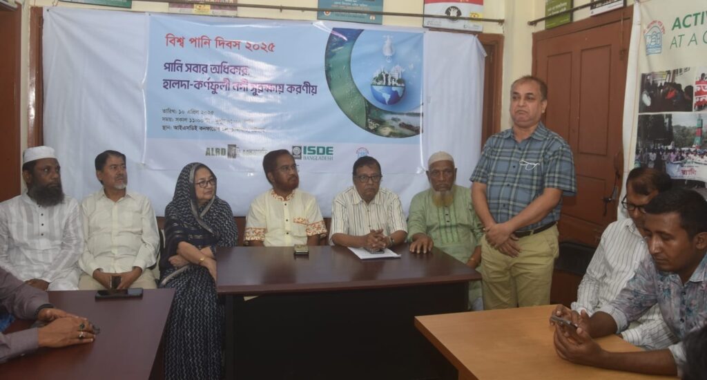 বন্দরনগরী চট্টগ্রাম মহানগরী একদিকে বর্ষাকালে পুরো শহর পানিতে থলিয়ে যায় আবার শুকণা মৌসুমে পানির জন্য হাহাকার পড়ে যায়। উপকূলীয় অঞ্চলে পানির স্তর দ্রুত নীচে নেমে যাওয়ায় ও সমুদ্রপিষ্টের উচ্চতা বাড়ায় লবনাক্ততা বাড়ছে প্রতিনিয়তই। সেকারনে বিশুদ্ধ খাবার পানির সংকটে কৃষি কাজ, বাসা বাড়ীর কাজও পুরোপুরি পর্যুদস্ত। আর এগুলোর পেছনে পার্বত্য চট্টগ্রামের বন বিনষ্ট, জলাধার, নদী ও খাল দখল অন্যতম কারণ হয়ে দাড়িয়েছে। চট্টগ্রাম মহানগরীতে ওয়াসার সরবরাহকৃত পানির মূল উৎস হালদা-কর্ণফুলী নদীর বর্তমান অবস্থা চলমান থাকলে আগামীতে লবনাক্ত পানিও ওয়াসা সরবরাহ করতে পারবে না। তাই পার্বত্য চট্টগ্রামের বন, কর্ণফুলী ও হালদা নদী বাঁচানো যেরকম প্রয়োজন, তেমনি জরুরি ভাবে লবনাক্ত পানিকে বিশুদ্ধকরণ প্রক্রিয়ায় লবণাক্ত পানি থেকে লবণ সরিয়ে ফেলার উন্নত প্রযুক্তি নিয়ে আসতে হবে। ১০ এপ্রিল বিশ্ব পানি দিবস উদযাপন উপলক্ষে অ্যাসোসিয়েশন অব ল্যান্ড রিফর্ম অ্যান্ড ডেভেলফমেন্ট (এএলআরডি) এর সহযোগিতায় বেসরকারী উন্নয়ন সংস্থা আএসডিই বাংলাদেশ, ও ক্যাব চট্টগ্রাম কর্তৃক আয়োজিত আলোচনা সভায় বিভিন্ন বক্তাগন উপরোক্ত মন্তব্য করেন।