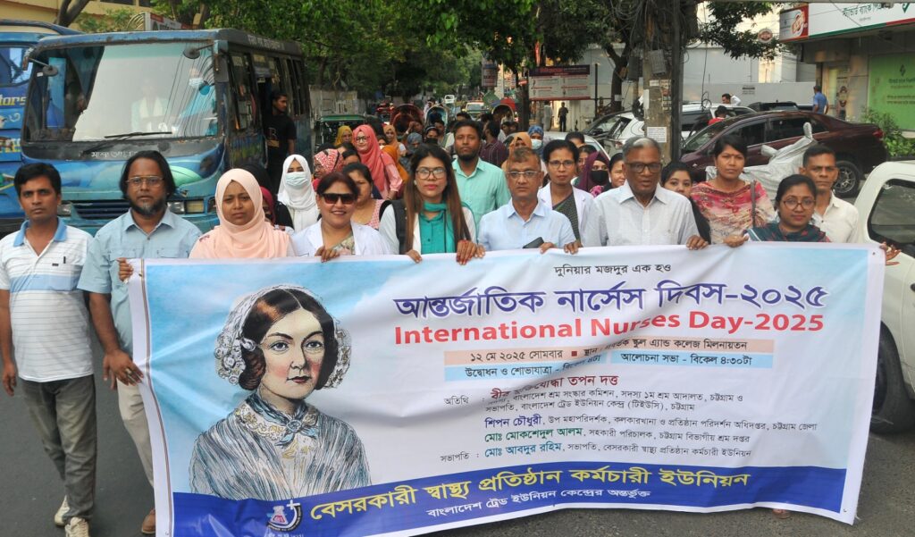 আজ বিকাল ৪টায় আন্তর্জাতিক নার্সেস দিবস উপলক্ষে বাংলাদেশ ট্রেড ইউনিয়ন কেন্দ্র অন্তর্ভুক্ত বেসরকারি স্বাস্থ্য প্রতিষ্ঠান কর্মচারী ইউনিয়নের উদ্যোগে এক র্যালি ও আলোচনা সভার আয়োজন করা হয়। অনুষ্ঠানে সভাপতিত্ব করেন ইউনিয়নের সভাপতি আব্দুর রহিম এবং সঞ্চালনা করেন রোজি সাহা।