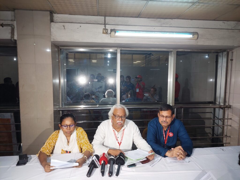 আজ বিএমএ মিলনায়তনে আয়োজিত সংবাদ ব্রিফিংয়ে উপস্থিত ছিলেন মুখপাত্র কমরেড রুহিন হোসেন প্রিন্স, কমরেড মিহির ঘোষ এবং মিডিয়া উপ-পরিষদের আহ্বায়ক লাকী আক্তার।
