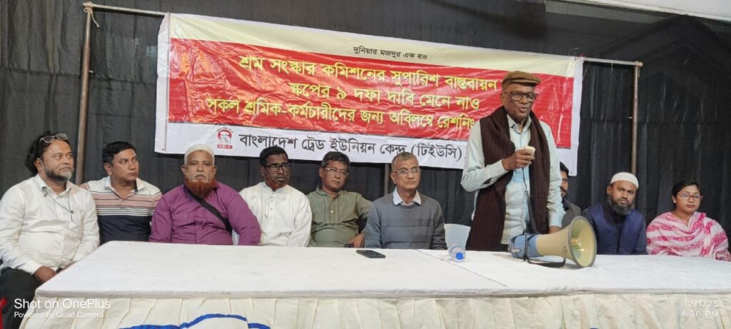 সভাপতি তপন দত্ত তাঁর বক্তব্যে শ্রম সংস্কার কমিশনের সুপারিশ বাস্তবায়ন এবং শ্রমিক–কর্মচারী ঐক্য পরিষদের ৯ দফা দাবি দ্রুত মেনে নেওয়ার জন্য সরকারের প্রতি আহ্বান জানান। তিনি নিত্যপ্রয়োজনীয় পণ্যের ধারাবাহিক মূল্য বৃদ্ধিতে গভীর উদ্বেগ প্রকাশ করেন।