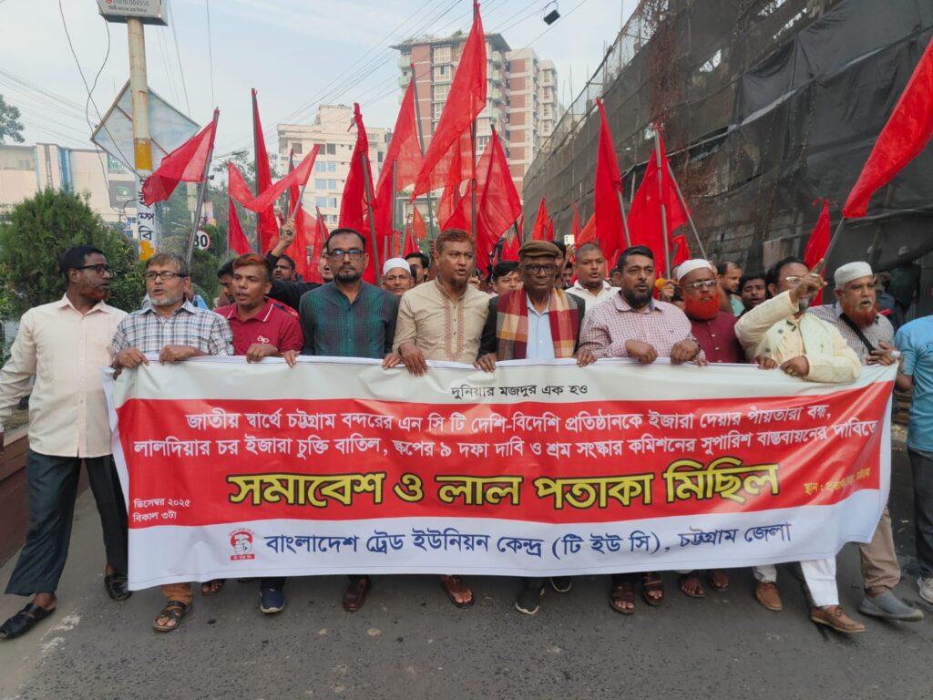 টিইউসি চট্টগ্রাম জেলার  উদ্যোগে লালপতাকা মিছিল