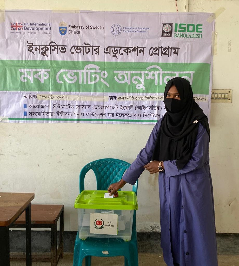 এই লক্ষ্য সামনে রেখে ১৩ জানুয়ারি ২০২৬ তারিখে আন্তর্জাতিক উন্নয়ন সংস্থা আইএফইএস-এর সহযোগিতায় আইএসডিই বাংলাদেশ-এর উদ্যোগে পেকুয়া উপজেলার উপকূলীয় রাজাখালী ফয়জুন্নেছা উচ্চ বিদ্যালয় অ্যান্ড কলেজে অনুষ্ঠিত হয় “ভোটার এডুকেশন: যুব অরিয়েন্টেশন ও মকভোটিং” কর্মসূচি।