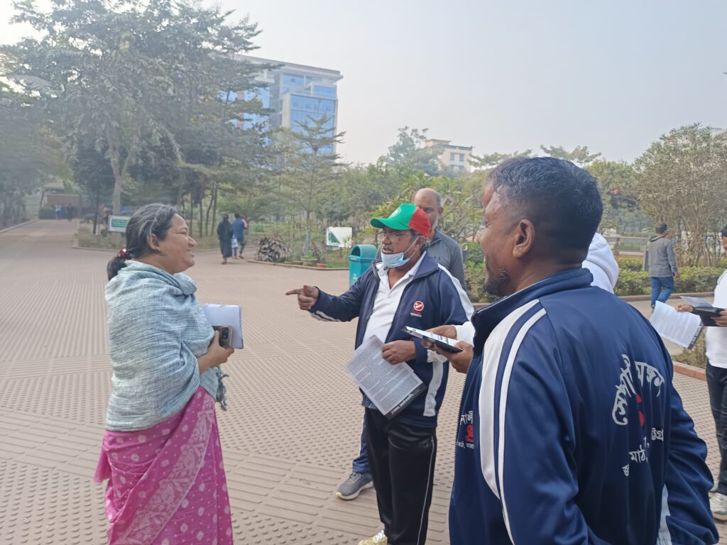 ছবির ক্যাপশন- চট্টগ্রাম-১১ আসনে বাসদ(মার্কসবাদী) মনোনীত প্রার্থী দীপা মজুমদার কাঁচি মার্কার সমর্থনে গনসংযোগ করেন