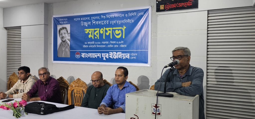 গতকাল ৩০ জানুয়ারি, ২০২৬ বিকেল পাঁচটায়, চট্টগ্রাম একাডেমি মিলনায়তনে বাংলাদেশ যুব ইউনিয়ন, চট্টগ্রাম জেলার উদ্যোগে স্মরণসভা অনুষ্ঠিত হয় ।